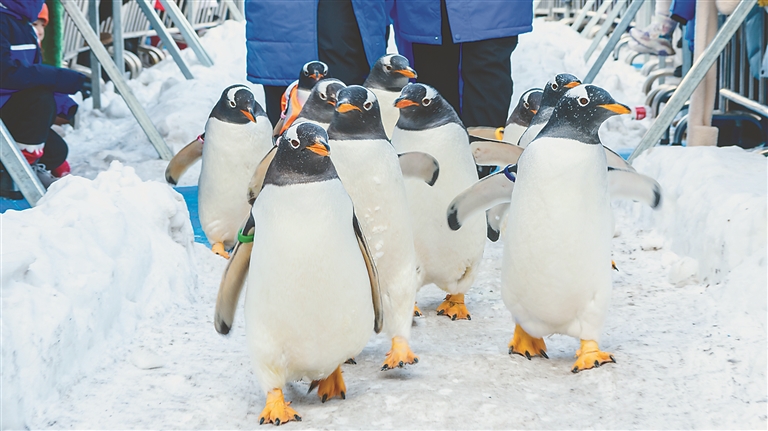 “我們就是專程為‘淘學企鵝’而來,能在哈爾濱看到全國僅有的企鵝冰雪巡游,真的不虛此行?!痹缭?年前,上海游客孟蕓就通過短視頻看到它們背著小書包打卡黑龍江美景的身影,成為妥妥的“鵝粉”。她說,為了能在前排近距離觀看,她更是早早就來到極地廣場等候。哈爾濱極地公園營銷部經(jīng)理崔美艷說,“淘學企鵝冰雪巡游”自啟動以來,每日引萬人打卡,成為今冬的爆款網(wǎng)紅活動,吸引全國游客來到哈爾濱看企鵝打卡拍攝,全網(wǎng)曝光量更是在25天的時間里突破了8.5億。