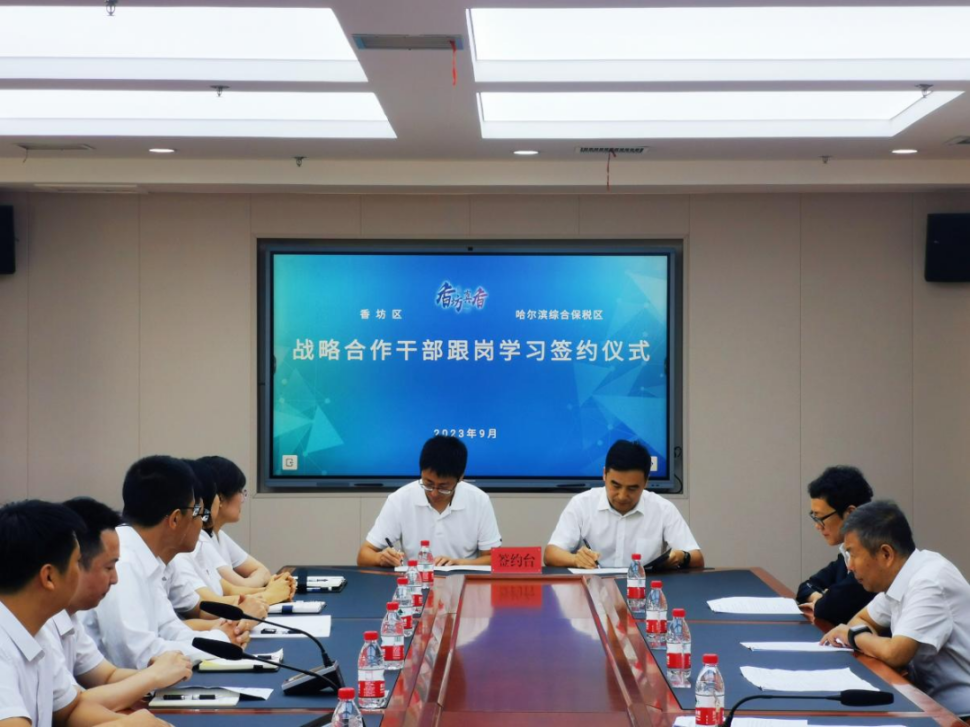 黑龍江經(jīng)濟(jì)網(wǎng)訊(記者商祺)9月8日上午,哈爾濱綜合保稅區(qū)管委會(huì)與香坊區(qū)委組織部舉行戰(zhàn)略合作協(xié)議簽約儀式暨干部跟崗學(xué)習(xí)對(duì)接會(huì)。哈爾濱綜保區(qū)管委會(huì)常務(wù)副主任、黨工委副書(shū)記邸凱與香坊區(qū)委組織部部長(zhǎng)楊鐵巖出席會(huì)議并代表雙方簽約。相關(guān)單位主要領(lǐng)導(dǎo)及10余名跟崗學(xué)習(xí)干部參加會(huì)議。