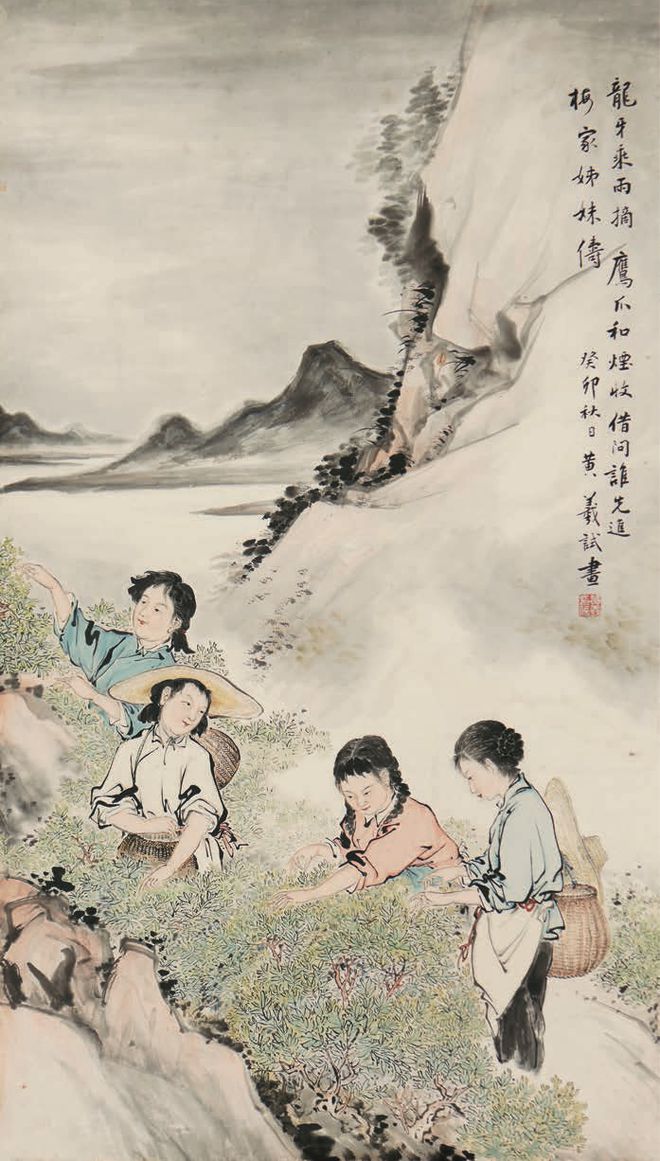 130cm×65cm 紙本設色 福建省黃羲博物館藏