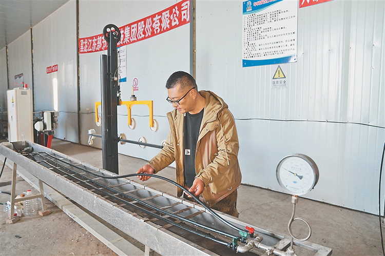 隆冬時節(jié),皚皚白雪覆蓋下的黑土地正在休養(yǎng)生息,為新一年的春耕積蓄力量。與黝黑的土地一起積蓄力量的還有北大荒集團(tuán)齊齊哈爾分公司滴灌專班的工作人員,他們利用冬閑時間,對進(jìn)場的每一批次、每一盤滴灌管進(jìn)行抗水壓測試,以防止混入抗壓能力差的管帶影響春耕生產(chǎn)。多年來,一直在與春旱抗?fàn)幍乃麄?,認(rèn)真、仔細(xì)地對待每一項與抗旱相關(guān)的工作,在旱地突圍的道路上一步一個腳印地前行。