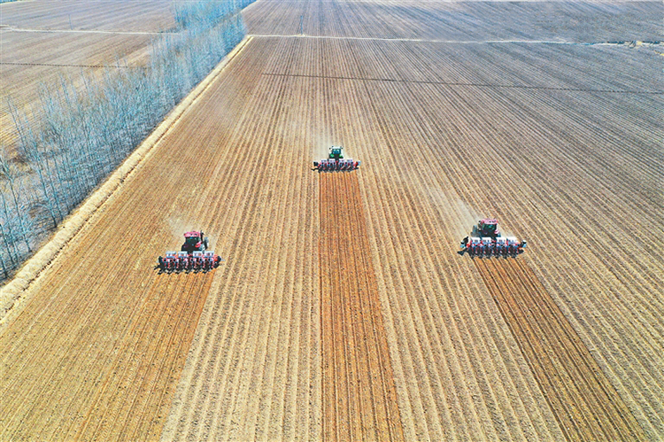 前期播種與滴灌管帶同時鋪設(shè)。 王金玲攝