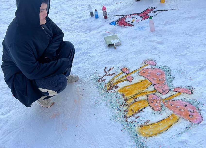 太陽花在雪地中“綻放”,蘑菇在雪中“生長”……近日,走進(jìn)哈爾濱學(xué)院藝術(shù)校區(qū)運(yùn)動場,一件件色彩斑斕的涂鴉作品在校園雪場上格外搶眼,為校園文化建設(shè)增添了一抹亮麗的冬日風(fēng)景線。