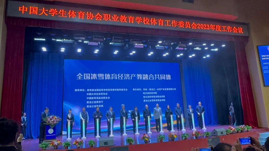 當(dāng)日,中國大學(xué)生體育協(xié)會(huì)職業(yè)教育學(xué)校體育工作委員會(huì)2023年度工作會(huì)議暨新時(shí)代高等職業(yè)學(xué)校體育高質(zhì)量發(fā)展研討會(huì)同步舉辦,共商職業(yè)教育與體育教育、冰雪經(jīng)濟(jì)融合發(fā)展大計(jì),促進(jìn)職業(yè)教育辦學(xué)模式創(chuàng)新,推動(dòng)現(xiàn)代冰雪產(chǎn)業(yè)產(chǎn)教融合、科學(xué)發(fā)展,全面加強(qiáng)成員單位在高端冰雪技術(shù)技能人才培養(yǎng)、冰雪裝備研發(fā)及技術(shù)轉(zhuǎn)化、職業(yè)冰雪體育教育優(yōu)質(zhì)資源共享等方面深度合作。