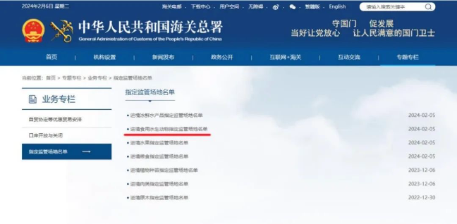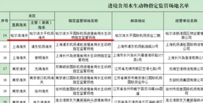 2023年12月14日-15日,海關(guān)總署專家組對哈爾濱太平國際機(jī)場進(jìn)境食用水生動物指定監(jiān)管場地進(jìn)行驗(yàn)收。2月5日海關(guān)總署公告正式通過驗(yàn)收。
