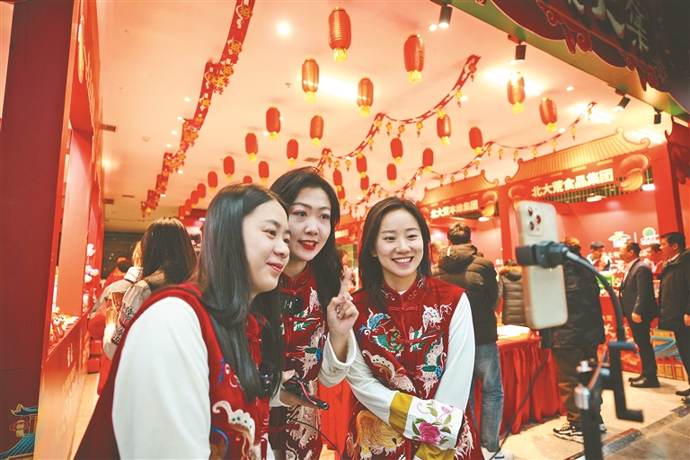 豐緣餃子粉、九三大豆油、完達山乳制品、北大荒老豆腐、親民有機酸菜、“薯你帶勁”粉絲……在北大荒年貨大集上,琳瑯滿目的商品吸引了眾多市民、游客駐足,他們或挑選商品,或品嘗美食,還有的參加吹糖人、寫春聯(lián)、寫福字、蘸冰糖葫蘆等體驗項目,熱鬧、喜慶的氣氛讓這里的年味兒更濃。