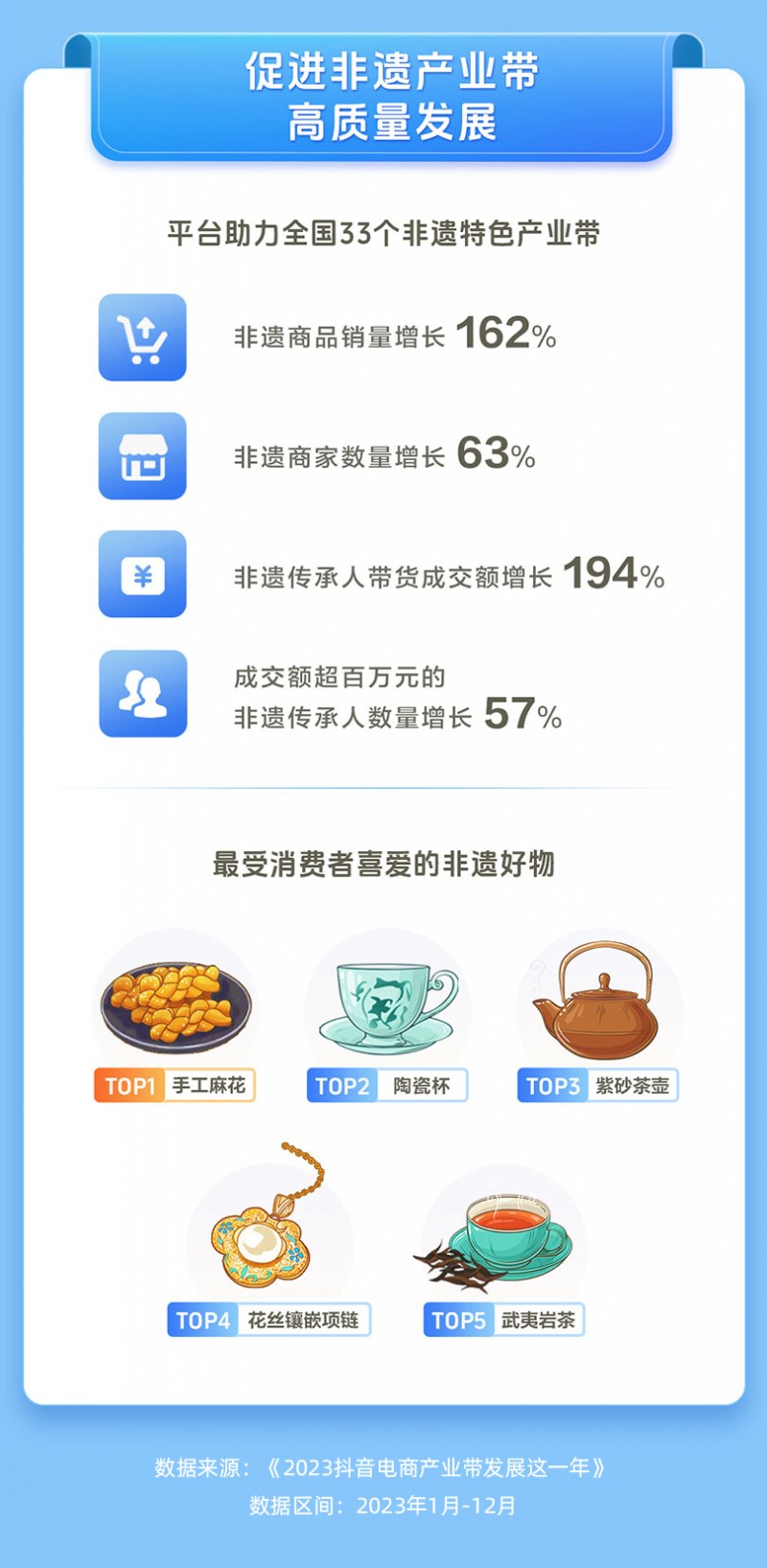 報告披露,抖音電商依托平臺特色,系統(tǒng)化和規(guī)?;龀址沁z產(chǎn)業(yè)帶高質(zhì)量發(fā)展。