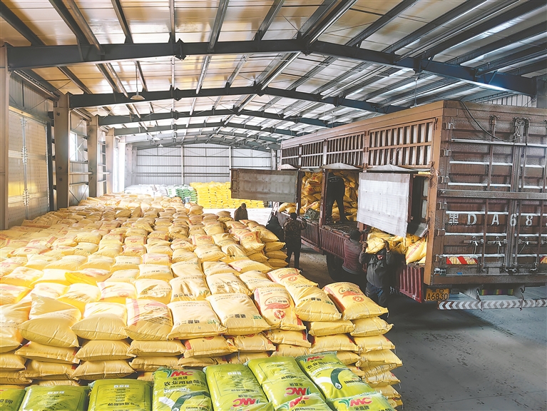 “截至目前,公司統(tǒng)供肥料22200余噸,已下擺17982噸,我們有專人負責肥料儲存、安全保障工作,每天進行安全隱患排查,做好肥料防破損、防火、防盜、防風防潮等,確保在春耕生產(chǎn)時肥料可以及時發(fā)放到種植戶手里,為搶前抓早備春耕提供有力保障。”農(nóng)業(yè)發(fā)展部總經(jīng)理萬文達說。