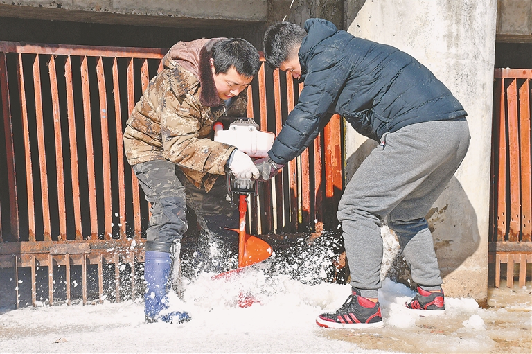 技術人員給被冰封的提水泵脫“冰衣”。王金彬攝