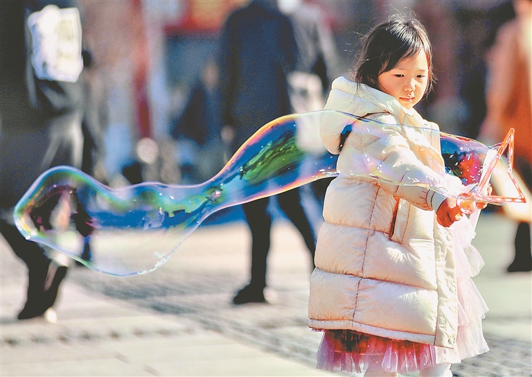 24日,陽光明媚,空氣清新,哈爾濱市許多家長帶著孩子外出游玩。在公園里、廣場(chǎng)上和松花江畔,孩子們騎車、放風(fēng)箏、玩滑板、吹泡泡……奔跑著,歡笑著,盡情享受著春天的美好。