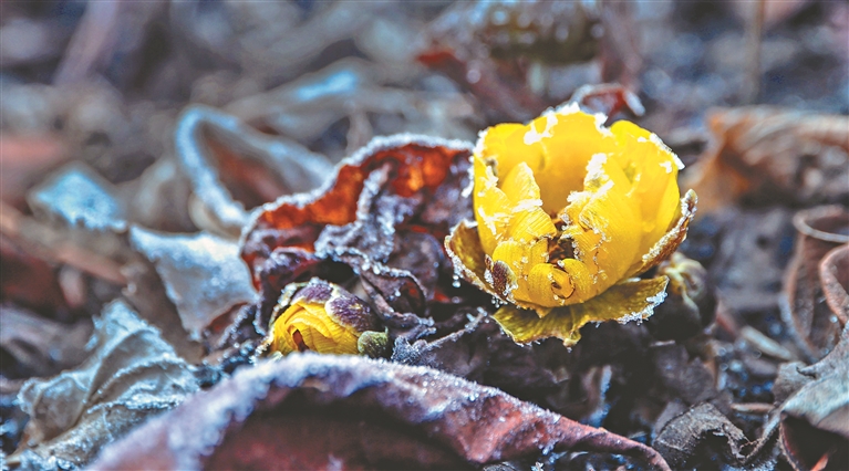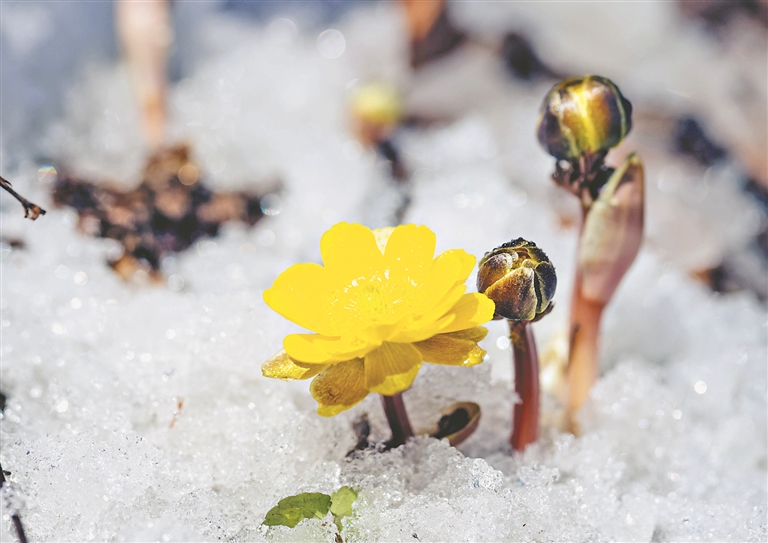 在哈爾濱市金龍山景區(qū)山林里,冰凌花含苞待放,若隱若現(xiàn)的金黃色花瓣向人們傳遞著春的訊息。在這個時間段,盡管冰雪尚未完全融化,但只要感受到一絲溫暖,冰凌花就會破冰雪而出,展現(xiàn)出頑強(qiáng)的生命力。