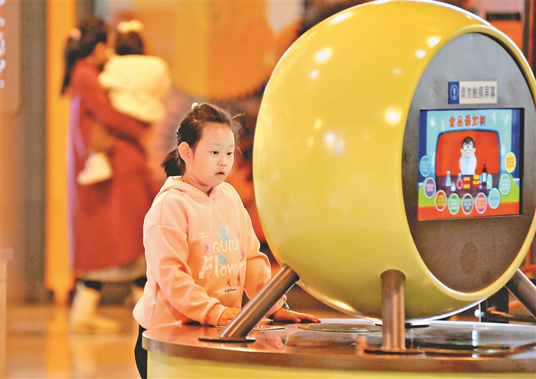 清明節(jié)假期,省科技館內許多家長帶著孩子來感受科技的魅力。
