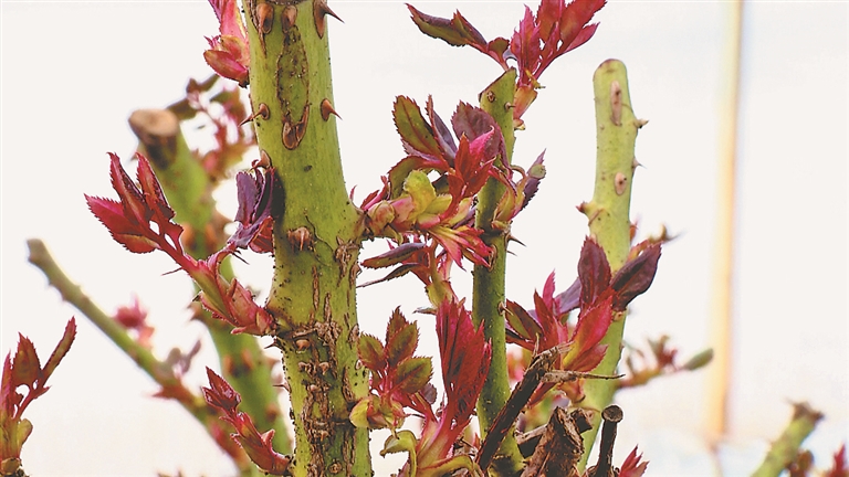 寒地玫瑰已經(jīng)長(zhǎng)出花蕾。本報(bào)記者 賈紅路攝