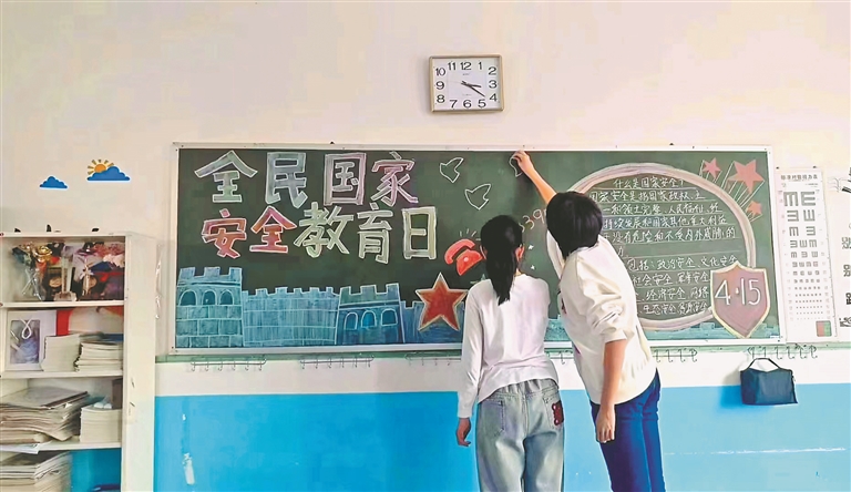 圖為在嘉蔭縣“全民國家安全教育日”進校園活動中,中小學校組織師生制作相關內(nèi)容黑板報,以此向?qū)W生宣傳國家安全相關法律法規(guī)知識。本報記者 賈紅路攝