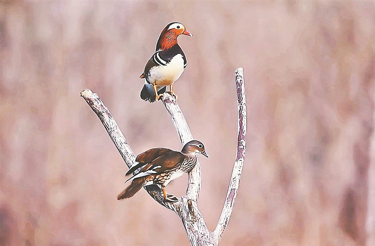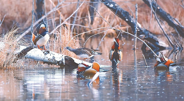 近日,隨著黑龍江開江流冰,第一批40多只鴛鴦從黑龍江邊遷徙到“鴛鴦谷”。一時間,這里呈現(xiàn)一幅春天“冰雪消融,鴛鴦戲水”的美景圖。鴛鴦谷位于黑龍江南岸、鴨蛋河?xùn)|岸、鶴崗市蘿北縣區(qū)域內(nèi)的延軍農(nóng)場15連西側(cè)。這里山林茂密、泡沼相連,是許多候鳥,特別是鴛鴦的家。本報記者 吳樹江攝