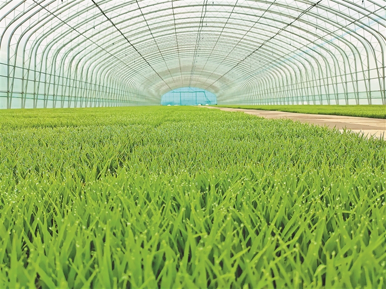 育秧大棚內(nèi)的水稻秧苗。王佳攝