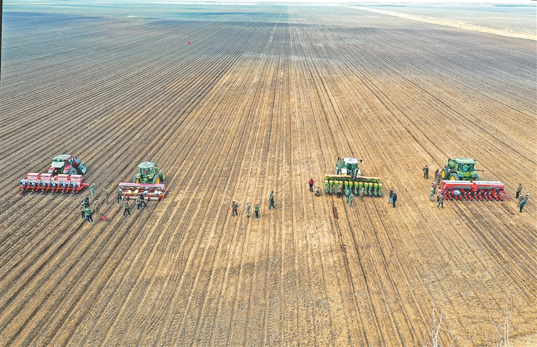 近日,“大糧倉”黑龍江墾區(qū)玉米播種全面展開,北大荒有耕地4600余萬畝,綜合機(jī)械化率99.7%。北大荒農(nóng)業(yè)股份友誼分公司今年種植玉米81萬畝,在機(jī)械化、智能化的強(qiáng)力支撐下,作業(yè)進(jìn)度快、效率高,有效提高了春播生產(chǎn)的質(zhì)量與進(jìn)度。徐宏宇攝