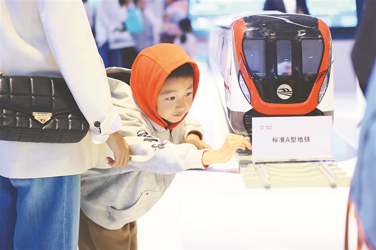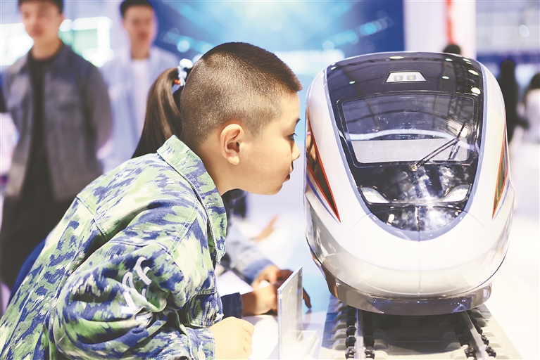 第三十三屆哈洽會成為了孩子們長見識的窗口。在中國中車的展臺前,孩子們的目光被一組組精美的列車模型所吸引?!拔覐膩頉]有見過這么多不同種類的列車模型”“我最喜歡的是和諧號,它看起來科技感十足?!蹦芡瑫r看到動車、和諧號還有地鐵并排擺在一起,孩子們興奮不已。