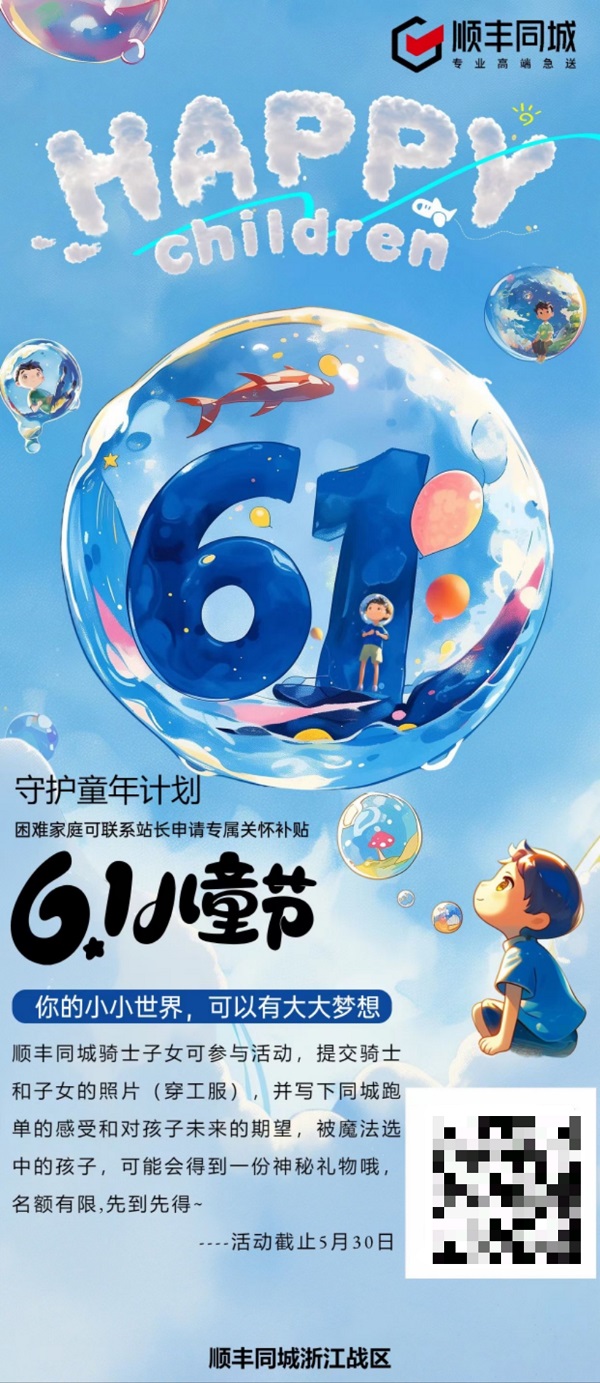 為慶?!傲弧眱和?jié)的到來,順豐同城在全國(guó)范圍內(nèi)精心舉辦了系列活動(dòng)。“六一”前夕,為體恤山區(qū)留守兒童及困難家庭兒童,順豐同城在東北、廣州、佛山為孩子們送上了別具心意的禮物和關(guān)懷;為了給“騎士”和孩子們創(chuàng)造更多美好回憶,順豐同城在西北、深圳、東莞開展了形式多樣的線下騎士親子活動(dòng),在河南、湖北、湖南聯(lián)合當(dāng)?shù)佧湲?dāng)勞舉辦了多場(chǎng)麥當(dāng)勞親子嘉年華活動(dòng),并在浙江推出“守護(hù)童年計(jì)劃”線上活動(dòng),“騎士”可通過分享親子合照、寫下對(duì)孩子的成長(zhǎng)寄語贏取獎(jiǎng)勵(lì)。此外,“六一”兒童節(jié)當(dāng)天,順豐同城還發(fā)起“曬親子合影,贏神秘好禮”線上活動(dòng),“騎士”通過視頻號(hào)發(fā)布親子照片并贏取神秘大禮。