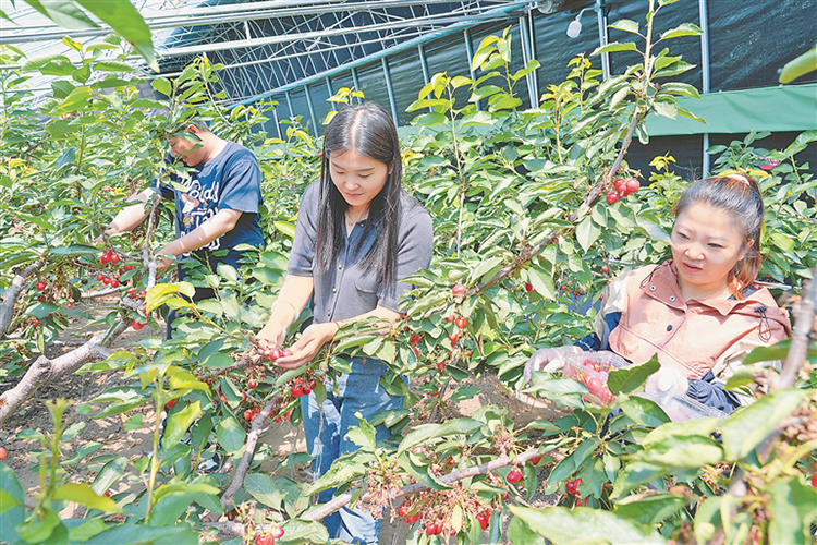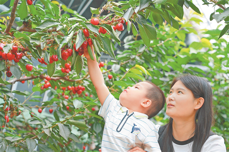 大櫻桃的成熟不僅讓工作人員喜笑顏開,忙著采摘櫻桃供應(yīng)市場,更吸引了不少游客前來觀光采摘,一幅幅生動景象繪就了夏日“豐收圖”。