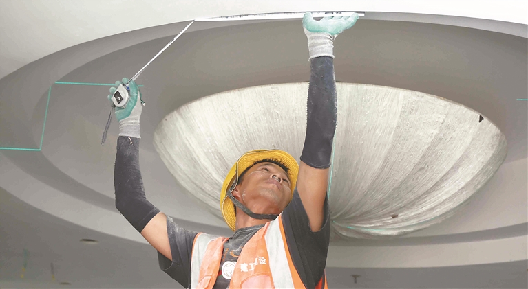 工人正在進(jìn)行內(nèi)部裝修。本報(bào)記者 張澍攝