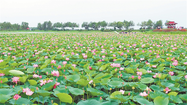走進(jìn)位于北林區(qū)雙河鎮(zhèn)西南村的正大稻田公園,荷花映日,稻始抽穗,田間不時(shí)有陣陣蛙鳴。藍(lán)天白云之下,綠浪翻滾,游人漫步其間交談著觀光感受,一幅寧靜安適的鄉(xiāng)村田園畫卷徐徐展開。“在閑暇的時(shí)候來到這里散散步,感受戶外樂趣和田園風(fēng)景,感覺身心都很放松、很快樂?!庇慰挖w忠塔說。