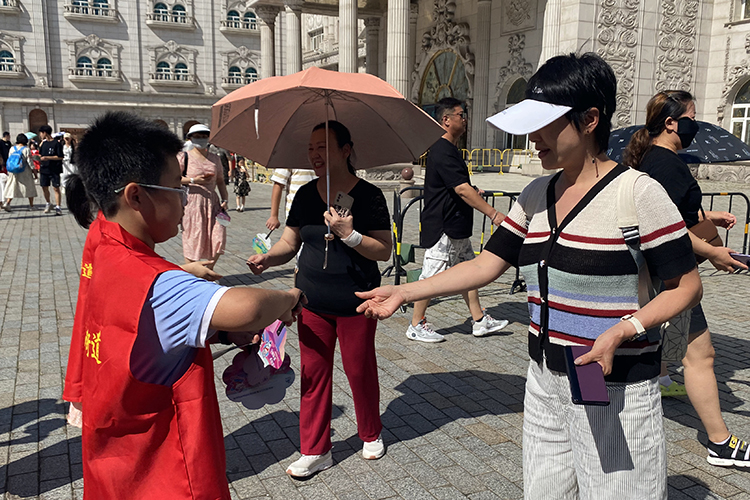 活動(dòng)當(dāng)天,社區(qū)工作人員帶領(lǐng)轄區(qū)的小志愿者們來到哈藥六廠,小志愿者們身穿統(tǒng)一的服裝,手持印有亞冬會(huì)標(biāo)志和宣傳語的扇子,精神飽滿地站在景點(diǎn)內(nèi),面帶微笑,熱情地向過往的游客發(fā)放,這些扇子不僅為大家?guī)砹私z絲涼意,更成為了宣傳亞冬會(huì)的有效載體。他們積極地向游客們介紹亞冬會(huì)相關(guān)知識(shí),“這是亞冬會(huì)的吉祥物“濱濱”和“妮妮”,是代表冰上和雪上運(yùn)動(dòng)的吉祥物,他們的熱情感染了周圍的每一個(gè)人,游客們紛紛接過扇子,細(xì)心地聽著小志愿者的介紹,在互動(dòng)中游客們不僅加深了對亞冬會(huì)的了解,還感受到了濃厚的體育氛圍和社區(qū)文化的魅力。此次活動(dòng),不僅為炎炎夏日中的游客送去清涼,還宣傳了哈爾濱亞冬會(huì),提升市民及游客對亞冬會(huì)的關(guān)注度和期待值。同時(shí),也展現(xiàn)了小志愿者們積極向上的精神風(fēng)貌和志愿服務(wù)精神,讓外地游客感受到哈爾濱的熱情,吸引更多的市民和游客關(guān)注和支持亞冬會(huì),共同迎接這場冰雪盛宴的到來。