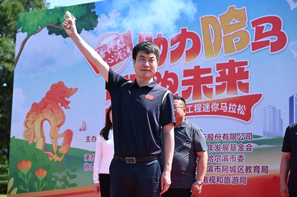 黑龍江經濟網訊(王丹陽)為助力哈爾濱銀行2024哈爾濱馬拉松活動,增強“丁香綻放·童心港灣”項目凝聚力,提升兒童身體素質和健康意識,更好地感受運動的魅力,提高兒童對馬拉松運動的了解、認識和興趣,讓兒童培養(yǎng)積極樂觀的生活態(tài)度,樹立頑強拼搏的意志品格,8月9日,“丁香綻放·童心港灣”“助力哈馬 迎跑未來”2024黑龍江省希望工程迷你馬拉松活動在哈爾濱市阿城區(qū)金上京歷史博物館拉開帷幕。共青團黑龍江省委副書記張濤,哈爾濱銀行黨委專職副書記張玉峰,中共哈爾濱市阿城區(qū)委副書記徐洪濤,黑龍江省青少年發(fā)展基金會理事長杜晶,共青團哈爾濱市委副書記劉婷婷,中共哈爾濱市阿城區(qū)委常委、宣傳部部長周巍巍,哈爾濱市阿城區(qū)人民政府副區(qū)長王殿友及阿城區(qū)團委、阿城區(qū)教育局、阿城區(qū)文化體育廣播電視和旅游局相關領導嘉賓出席活動,童心港灣留守兒童、少年兒童代表共計百余人參賽。