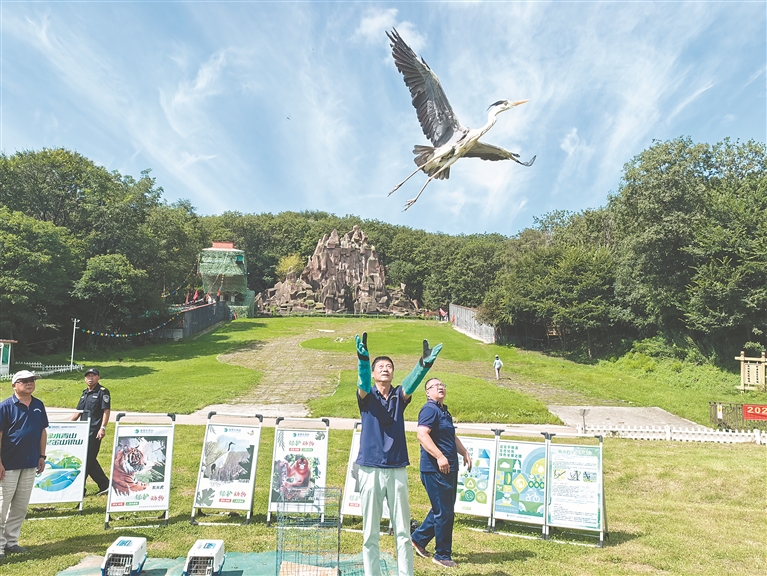 蒼鷺放飛現(xiàn)場(chǎng)。本報(bào)記者 劉瑞攝