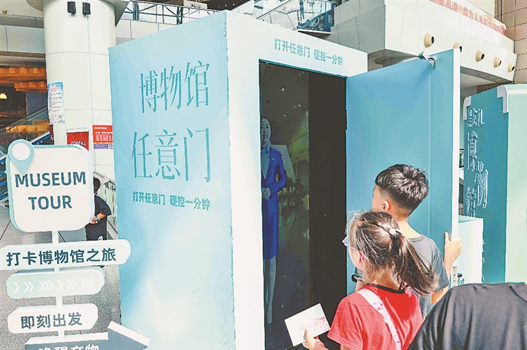 參觀觀眾跟隨著講解員的解說逐一打開九組文物旅行箱,仿佛走進了龍江珍寶庫,從史前的生物化石到龍江特色的生物標本;從小南山遺址出土玉器到唐渤海國文物;從于志學冰雪畫到朱曉東冰版畫,一件件珍貴的文物和藝術(shù)品,將黑龍江的歷史與文化濃縮、組合,讓觀眾充分領(lǐng)略了黑龍江的地大物博與黑土風情,閱讀與感受龍江文化。觀眾們打開充滿科技元素的“時空任意門”,通過視頻了解黑龍江省、市、縣博物館和展覽訊息,仿佛打破時空界限,身臨其境般體驗不同的博物館。
