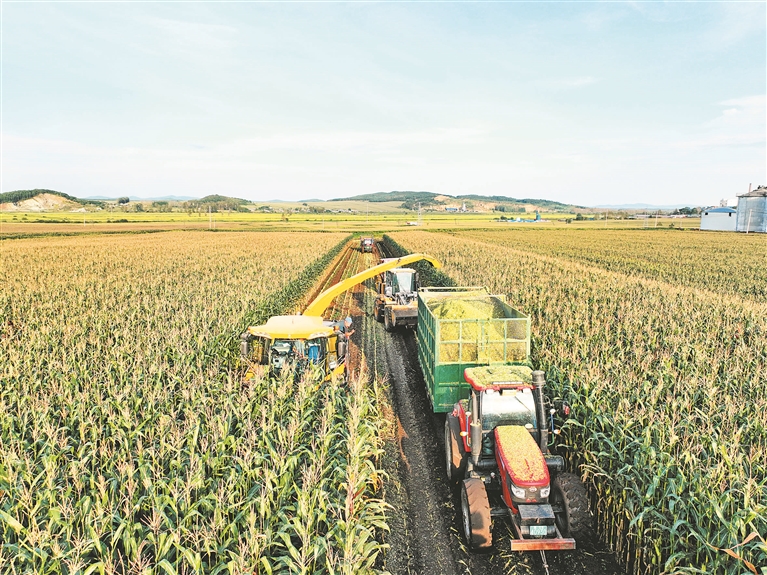 青貯玉米是八五一一農(nóng)場有限公司2.4萬頭奶牛越冬的重要口糧。經(jīng)過切碎、加工后,發(fā)酵制作成青貯飼料的玉米干物質(zhì)淀粉含量高、營養(yǎng)好,是公認(rèn)的優(yōu)質(zhì)飼料。青貯玉米既為奶牛提供了優(yōu)質(zhì)口糧,又減少了因焚燒玉米秸稈帶來的環(huán)境污染,為各牧場增收奠定了基礎(chǔ),更實現(xiàn)了畜牧業(yè)綠色低碳高質(zhì)量發(fā)展。