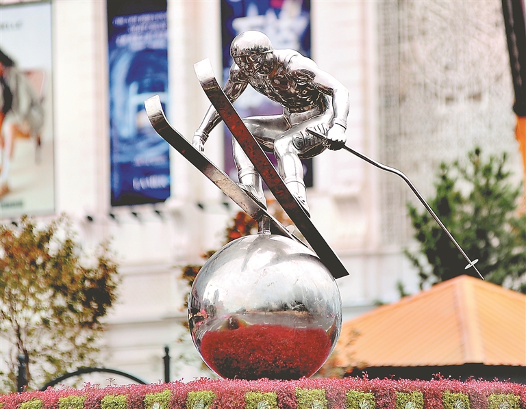 9日,在哈爾濱市南崗區(qū)紅軍街上,一處綠地里以亞冬會(huì)冰雪比賽項(xiàng)目為主題的雕塑群吸引了行人的目光。這些雕塑外觀銀色、制作精美、栩栩如生,展現(xiàn)了運(yùn)動(dòng)員奮力拼搏、勇往直前的精神風(fēng)貌。