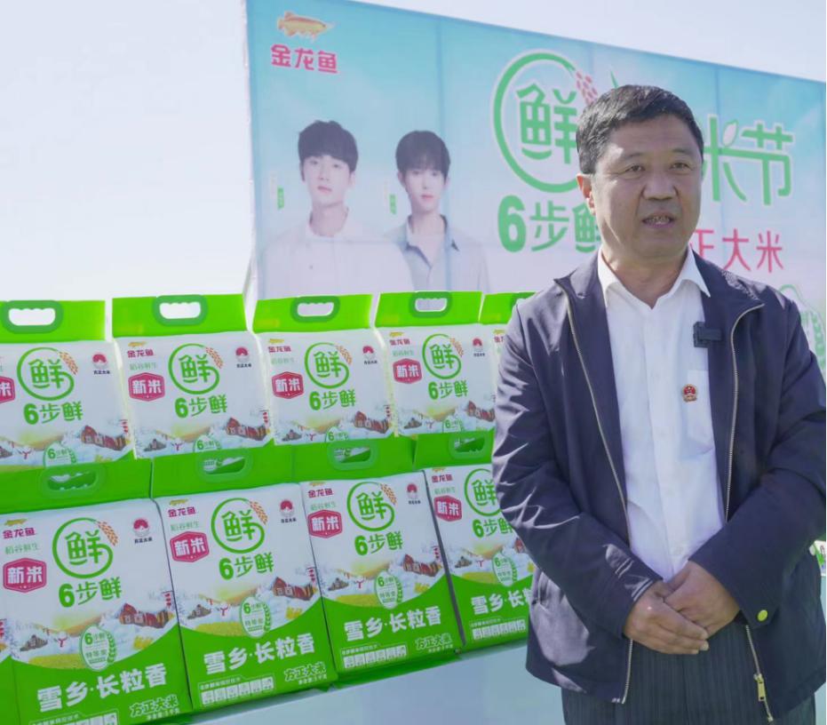 電商直播是今年新米節(jié)上的重頭戲,稻田邊將直播間搬到了現(xiàn)場。張清泉主任面向直播鏡頭,向觀眾們分享方正縣如何搶抓機遇、整合農(nóng)產(chǎn)品資源帶動農(nóng)民增收致富的故事,與觀眾們分享2024年第一把長粒香新米。談到方正,從地理環(huán)境、產(chǎn)業(yè)特色、產(chǎn)地優(yōu)勢等方面為觀眾們詳細介紹了雪鄉(xiāng)長粒香方正大米如何通過金龍魚采用的稻谷“6步鮮米精控技術”實現(xiàn)從大米到鮮米的跨越。