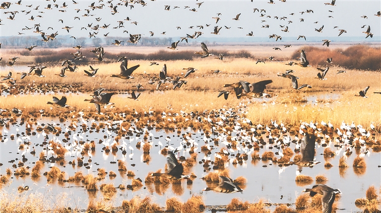 本報訊(馬淑芬 記者潘宏宇)6日一早,剛下過第一場雪的寶清縣,數(shù)千只東方白鸛在此“集結(jié)”,飛翔在湛藍(lán)的天空和白雪覆蓋的大地之上,勾勒出一幅美麗的圖景,為冬日的寶清增添了一抹別樣的生機與活力。