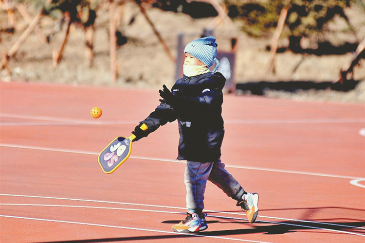 孩子在公園內打球。本報記者 蘇強攝
