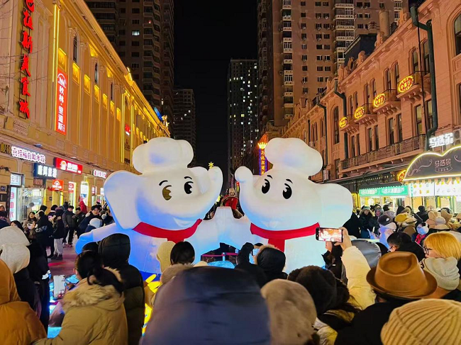 除了“白象”標(biāo)志性小象IP格外吸睛之外,因其與“對(duì)象”諧音的巧妙設(shè)計(jì),也吸引著往來(lái)行人紛紛駐足。雪雕前人潮涌動(dòng),不少市民游客在“對(duì)象”前合影留念。這一創(chuàng)意不僅為游客增添別樣的溫暖與歡樂(lè),也在社交媒體掀起一陣“找對(duì)象”的熱潮?;顒?dòng)期間,“對(duì)象雪雕走紅哈爾濱”的話題登上熱搜榜。不少網(wǎng)友調(diào)侃:“這就去哈爾濱找對(duì)象?!币灿腥吮硎荆赐晷∠笱┑?,感覺(jué)爾濱的冬天都充滿了浪漫的氣息。