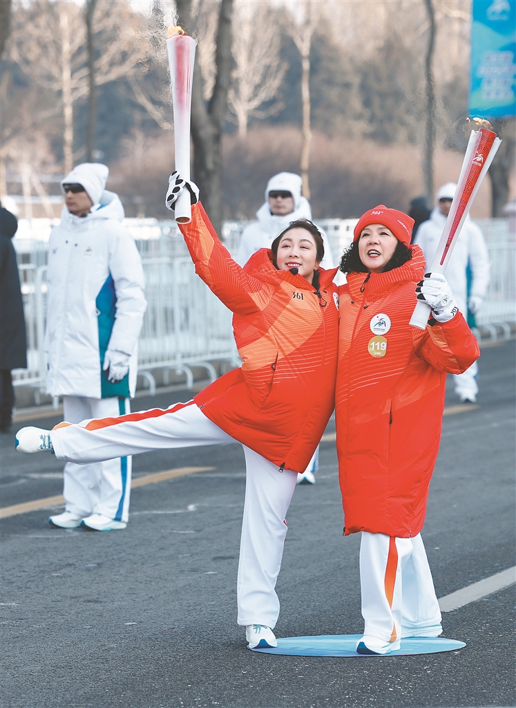 火炬手隋文靜(左)與火炬手欒波。本報(bào)記者 張澍攝