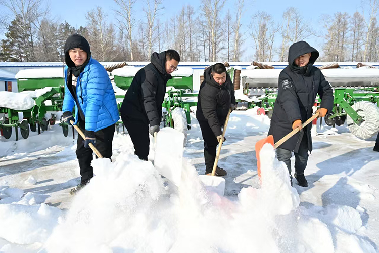 “眼下天氣逐漸回暖,為了避免氣溫上升造成積雪融化而形成冰層,影響后續(xù)工作,我們采取鏟車清雪、人工清邊的措施,確保將農(nóng)具場積雪徹底清理干凈,為農(nóng)機(jī)具檢修提供良好環(huán)境?!惫芾韰^(qū)工作人員說。