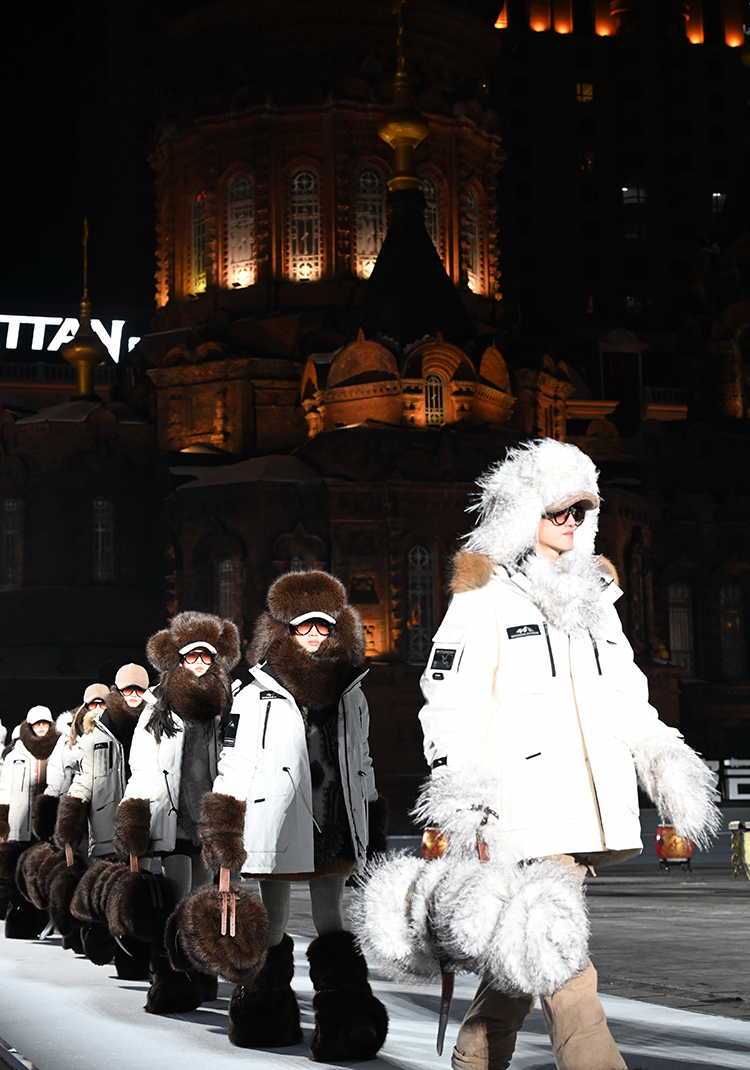 2024年12月,一場別開生面的波司登“致敬冰雪”時裝秀在哈爾濱上演。夜幕下,模特身著帶有“爾濱”元素的羽絨服在浪漫的索菲亞廣場走秀,設計師從哈爾濱人文與歷史中汲取靈感,打造出“城市系列”羽絨服飾,彰顯哈爾濱的城市文化特質(zhì)和冰雪文化內(nèi)涵。