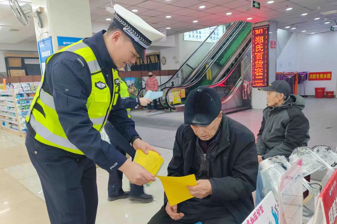 活動中,宣傳民警深入社區(qū)挨家挨戶敲響群眾家門,面對面向群眾宣傳交通法律法規(guī),重點針對老年人交通安全意識淡薄、駕駛電動車逆行、闖紅燈、違法載人等交通違法行為多發(fā)的實際情況,加強與老年群體的溝通交流,提醒老人們注意出行安全,養(yǎng)成自覺遵守交通法規(guī)的良好習慣。同時深入轄區(qū)大型商場、廣場、公園、社區(qū)等老年人群體聚集場所,通過發(fā)放宣傳資料、粘貼宣傳海報等方式,向老年人宣傳講解各類交通違法行為帶來的危害,解答交通出行等相關(guān)問題,進一步提升老年群體安全出行意識。