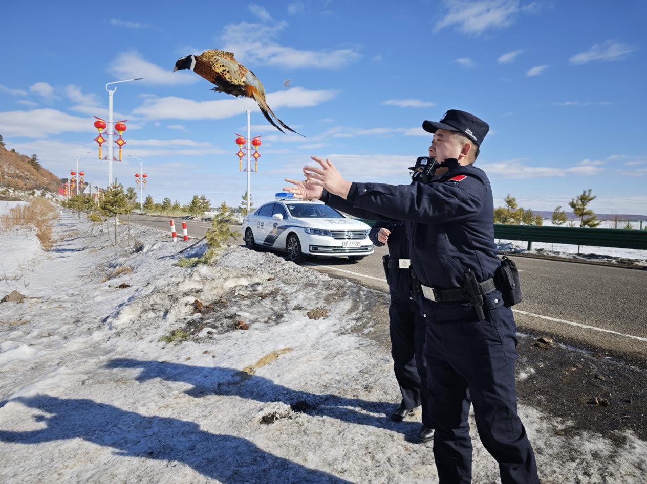 然而,這只環(huán)頸雉的狀態(tài)并不樂觀,腿部有明顯的擦傷,可能是在野外不慎受傷,導(dǎo)致行動遲緩。民警見狀,立即小心翼翼地將其帶回派出所,經(jīng)過兩天的悉心照料,環(huán)頸雉傷勢好轉(zhuǎn)、體力恢復(fù)。民警選擇了一片適宜的山林,將它放歸自然??粗h(huán)頸雉重新翱翔于藍天之下,大家都感到十分欣慰。