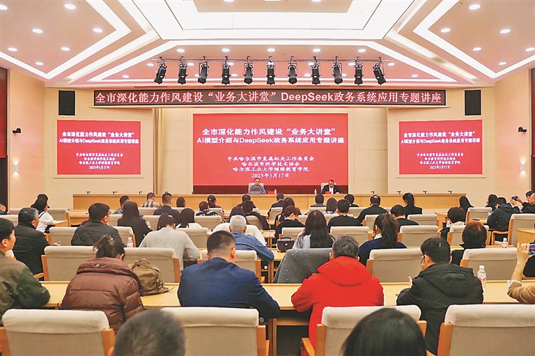 本報(bào)訊(記者 趙一諾)為加快提升機(jī)關(guān)干部數(shù)字素養(yǎng)與智能技術(shù)應(yīng)用能力,助力政務(wù)工作智能化轉(zhuǎn)型升級,近日,哈爾濱市直機(jī)關(guān)工委、哈爾濱市科協(xié)、哈爾濱工業(yè)大學(xué)繼續(xù)教育學(xué)院聯(lián)合舉辦哈爾濱市深化能力作風(fēng)建設(shè)“業(yè)務(wù)大講堂”——AI模型介紹與DeepSeek政務(wù)系統(tǒng)應(yīng)用專題講座。哈爾濱市直機(jī)關(guān)和部分區(qū)縣共200余名機(jī)關(guān)干部參加學(xué)習(xí)。