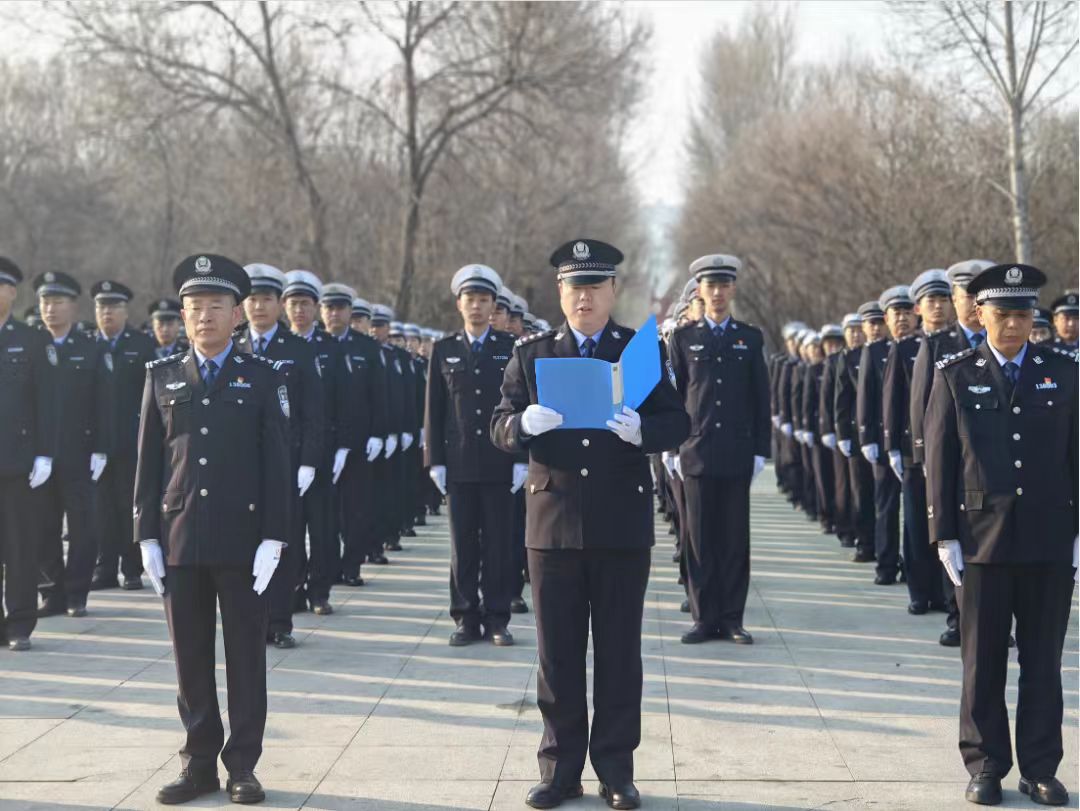 在重溫入警誓詞環(huán)節(jié),全體人員面向紀(jì)念碑,高舉右拳,齊聲宣誓,誓言擲地有聲,飽含對(duì)黨和人民的赤膽忠心。激昂的誓言在紀(jì)念碑上空回蕩,表達(dá)著公安民輔警們對(duì)黨和人民的無限忠誠(chéng),告慰著先烈英靈。