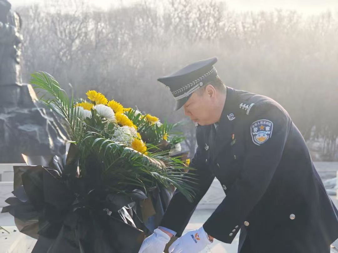 最后,全體人員依次獻(xiàn)花。民輔警們手捧鮮花,緩緩走到紀(jì)念碑前,輕輕獻(xiàn)上手中的鮮花,深深鞠躬,一朵朵鮮花在碑前綻放,寄托著對(duì)革命烈士的無盡追思。