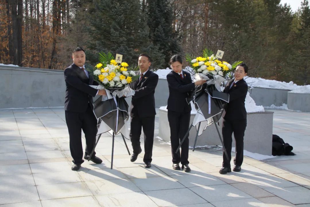活動中,在革命烈士紀念碑前,干警們整齊隊列、神情肅穆,向烈士英魂鞠躬默哀、敬獻花籃,表達對革命先烈的深切追思和崇高敬意。默哀完畢,干警們緩步繞行,共同瞻仰紀念碑,重溫革命先烈英雄事跡。