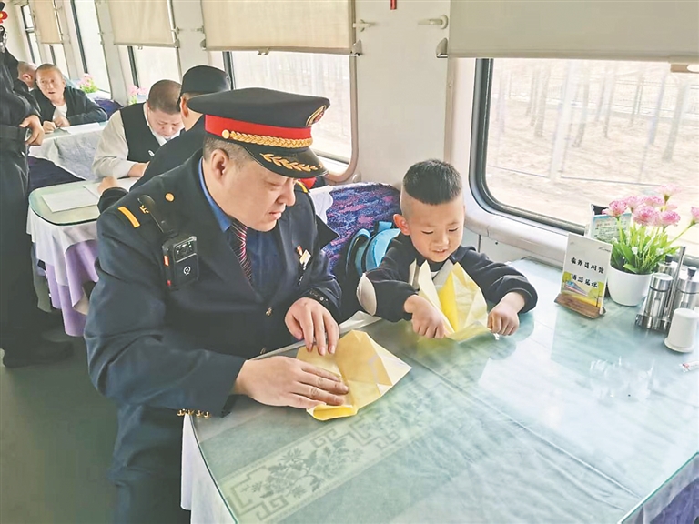 本報訊(張蔚萌 王夢 記者 王迪)近日,由鄭州開往海拉爾的K927次列車從昌圖站駛出后,列車長孫志強接到12306轉(zhuǎn)發(fā)的緊急尋人求助工單。經(jīng)過與客服溝通了解后得知,旅客劉玲玲帶6歲兒子劉俊澤從沈陽北站乘車至昌圖站,因下車時忙于整理行李,將座位上熟睡的孩子遺落在列車上。列車長孫志強通過對講機立即組織各節(jié)車廂列車員尋找孩子,確定孩子位置后迅速趕到現(xiàn)場。為了緩解孩子的緊張情緒,他化身“臨時爸爸”,將孩子帶到了餐車,不僅準備了一些自帶的小零食,還陪孩子一起折紙飛機。當列車停靠長春站后,孫志強按照其母親劉玲玲的要求,將孩子安全移交給長春站工作人員,等待其家屬前來接領。