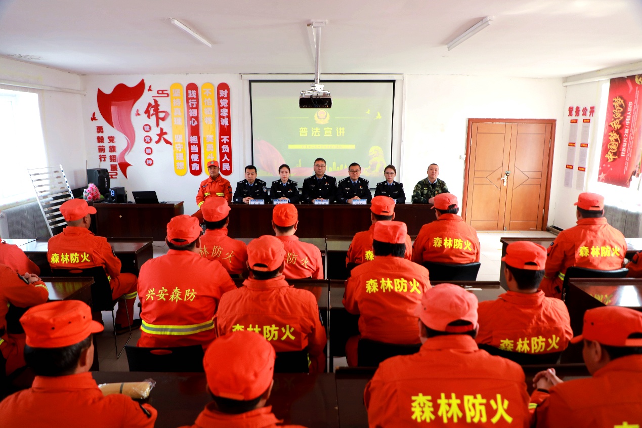 阿木爾林業(yè)局邀請(qǐng)阿木爾公安分局法律宣講團(tuán)成員,走進(jìn)專業(yè)撲火隊(duì)現(xiàn)場(chǎng)普法(王力 攝)