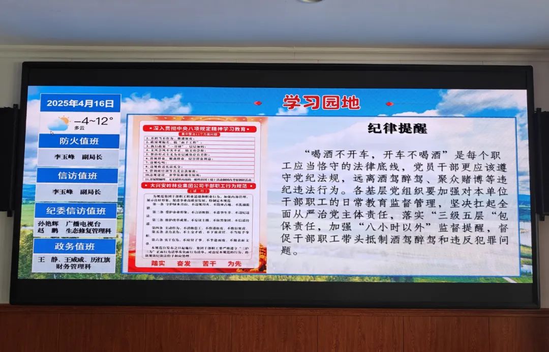 黑龍江經(jīng)濟(jì)網(wǎng)訊(劉知遙 記者馬朝林)阿木爾林業(yè)局以常態(tài)化酒駕醉駕教育為切入點(diǎn),深入開展紀(jì)律提醒、紀(jì)法教育和監(jiān)督檢查,持續(xù)釋放教育在先、執(zhí)紀(jì)從嚴(yán)的強(qiáng)烈信號(hào)。
