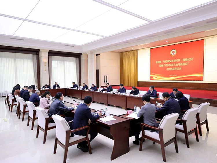4月28日,省政協(xié)召開“堅(jiān)持和發(fā)展新時(shí)代‘楓橋經(jīng)驗(yàn)’ 構(gòu)建矛盾糾紛源頭治理新格局”月度協(xié)商座談會(huì)。省政協(xié)主席藍(lán)紹敏出席并講話。