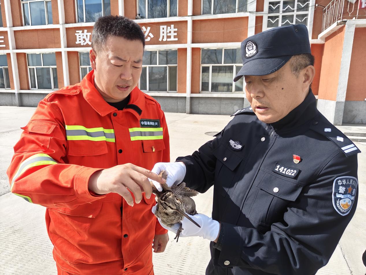 接警后,民警聯(lián)合區(qū)林業(yè)和草原局專業(yè)人員立即趕赴現(xiàn)場(chǎng),發(fā)現(xiàn)這只幼鳥臂部受傷骨折、呼吸稍顯急促,左眼疑似因撞擊導(dǎo)致失明,已喪失正常飛行能力。民警立刻為幼鳥提供食物,并對(duì)其傷口進(jìn)行簡(jiǎn)單包扎,隨后,經(jīng)專業(yè)部門鑒定,確認(rèn)該幼鳥為國(guó)家二級(jí)保護(hù)動(dòng)物——丘鷸。