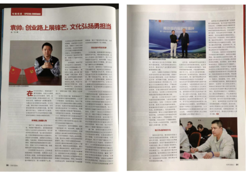 近日,我省籍企業(yè)家袁帥個(gè)人專訪《袁帥:創(chuàng)業(yè)路上展鋒芒,文化弘揚(yáng)勇?lián)?dāng)》榮登知名雜志《中華英才》。